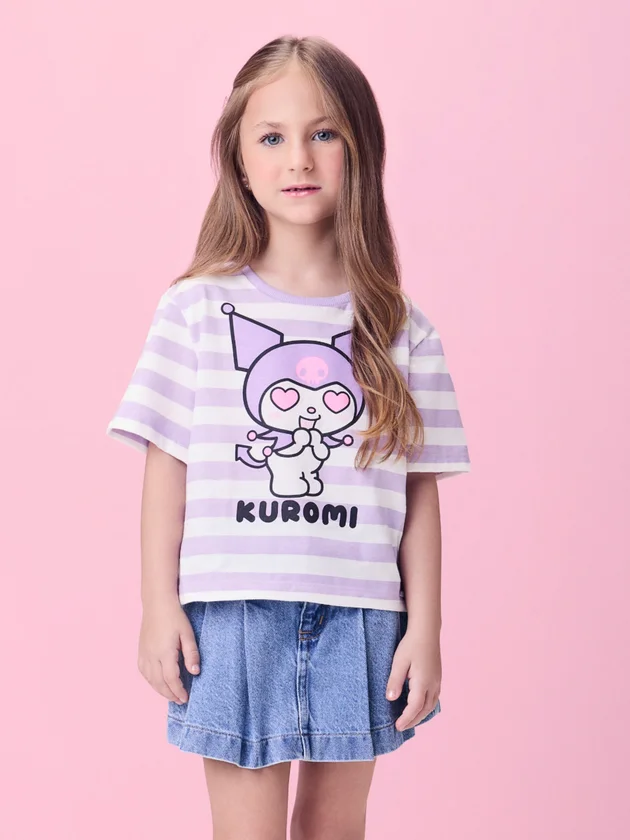 Com estilo e personalidade, essa blusa listrada roxa traz a personagem Kuromi em estampa divertida e cheia de atitude. As listras horizontais valorizam o visual e trazem movimento, enquanto o tom vibrante garante destaque. O corte confortável é ideal para os dias de sol e brincadeiras. Uma peça para as fãs da personagem e para quem ama looks diferentes e criativos. Uma explosão de cor e estilo. Ref.: H6340