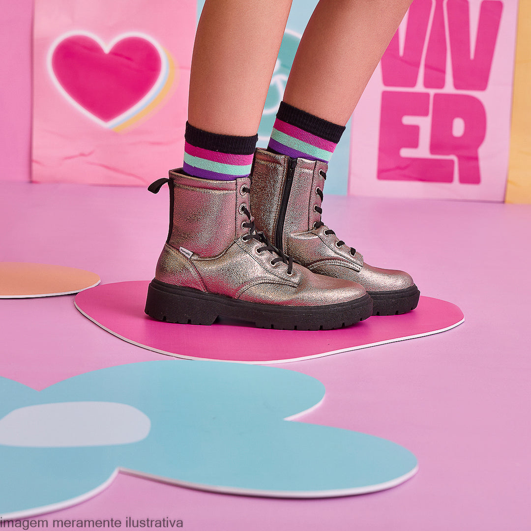 O solado tratorado de 3 cm, além de antiderrapante e resistente, proporciona segurança e estabilidade a cada passo. Para mais conforto, a palmilha anatômica garante um ajuste macio e o forro com espuma que absorve suor mantem os pés frescos e secos, tornando essa bota ideal para acompanhar as meninas em todas as aventuras.