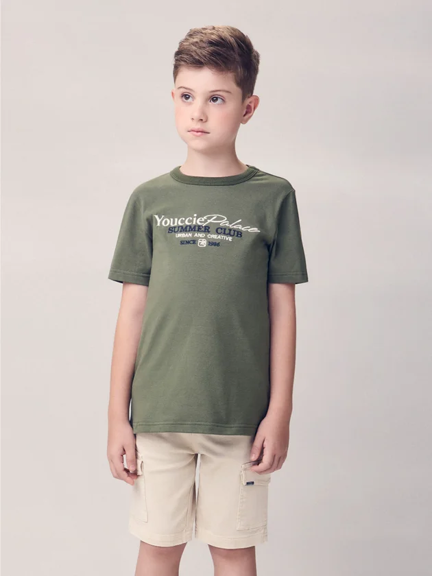 Autêntica e cheia de atitude, essa camiseta verde musgo traz o bordado Summer Club com um design moderno que expressa a essência urbana da Youccie. Ideal para meninos que buscam conforto e estilo no dia a dia, ela combina com diferentes estilos e garante uma pegada descolada para qualquer ocasião, do passeio ao encontro com os amigos. Ref.: D2911