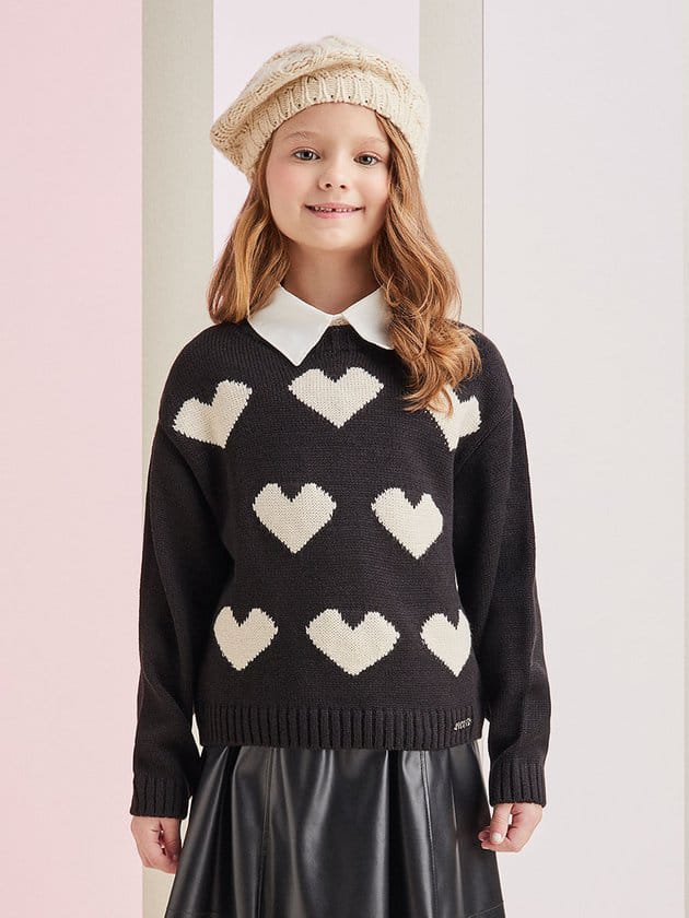 Mantenha as meninas quentinhas com o casaco infantil Momi em tricot preto. Além do conforto, o destaque fica por conta da estampa encantadora de corações, conferindo um toque de doçura ao visual. Composição: 100% acrílico. Ref.: H5015
