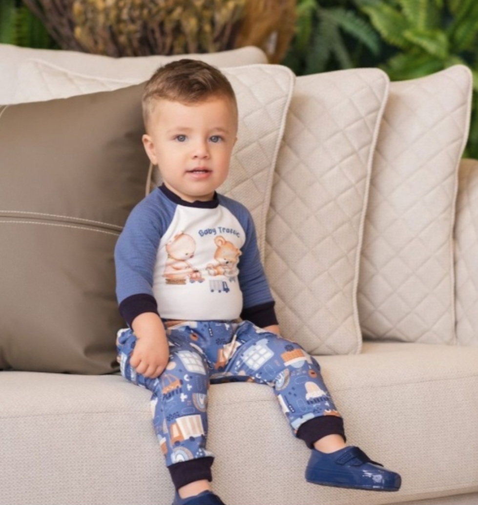 Conjunto Menino 2 Peças - Body Em Moletinho Estampa Digital E Manga Jacquard Com Calça Jogger Estampada Bolsos Cargo Levemente Saruel