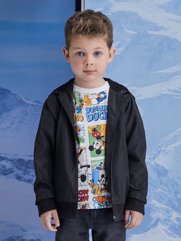 A jaqueta infantil Youccie em preto é uma escolha ideal para o dia a dia dos meninos. Fabricada com material corta-vento, oferece proteção e seu design versátil em tom escuro confere um toque moderno e fácil de combinar. Composição: 100% poliéster. Ref.: I1366
