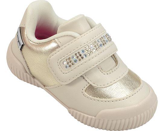Para meninas que estão começando a explorar o mundo com passinhos cheios de energia, esse tênis infantil em tons nude e dourado com strass brilhante, delicado, é a escolha ideal!