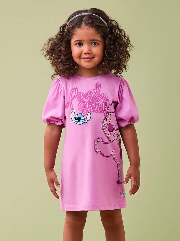 Este direto do universo Disney para os looks mais fofos do inverno! O vestido rosa da Momi traz a dupla Angel e Stitch em uma estampa divertida e cheia de carinho. As mangas bufantes adicionam um toque romântico e fashionista, perfeito para as pequenas apaixonadas por estilo e personagens encantadores. Uma peça comfy, estilosa e cheia de atitude! Ref.: J6173